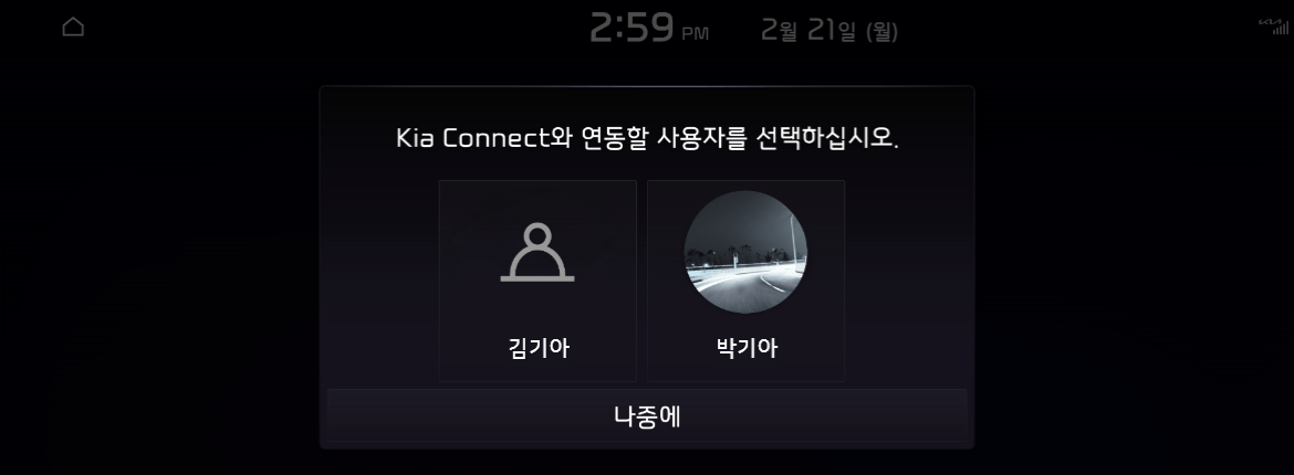 개인화 서비스를 이용하시려면, 프로필이 등록 된 사용자가 필요합니다. 등록 된 사용자가 없다면 아래의 안내를 통해 프로필 등록 후 Kia App 계정과 차량 단말 계정을 연동하여 개인화 서비스를 이용해 보세요