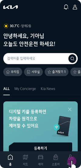 07 Kia App앱 접속 '마이카' 버튼 선택